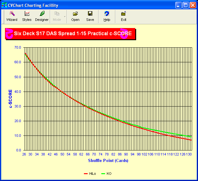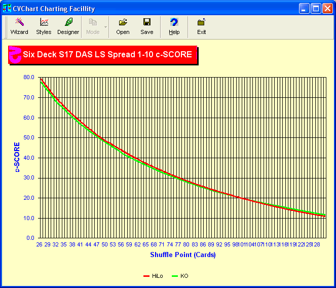 of 4.5/6, KO results are 102.7% of HiLo results. At a penetratoin of 5/6,